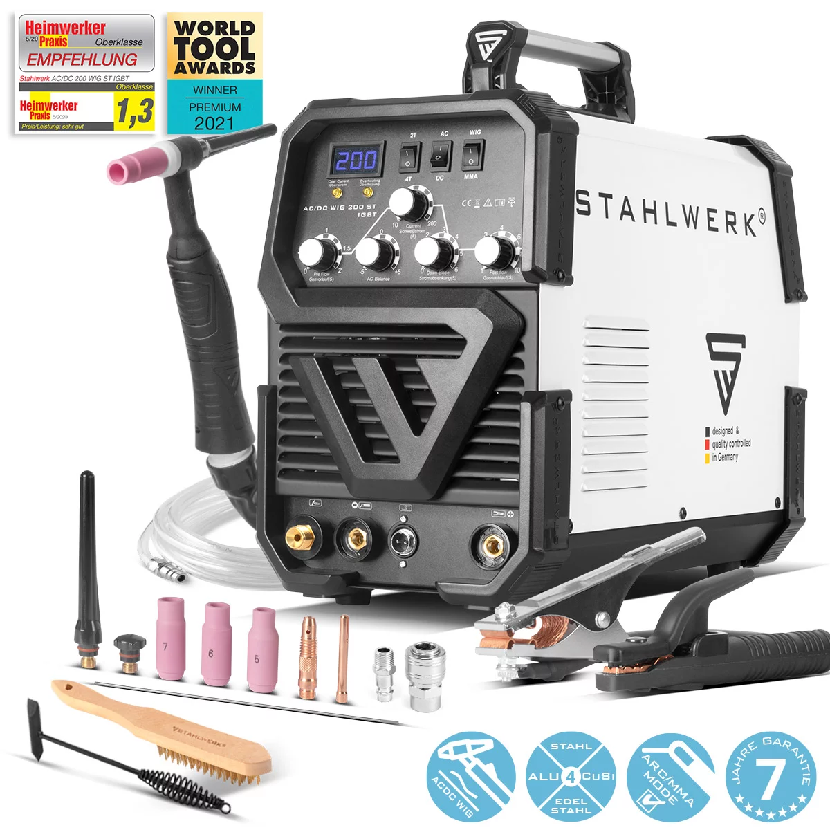 STAHLWERK Poste à souder AC/DC TIG 200 ST IGBT / Poste à souder combiné / Poste à souder combiné avec 200 A TIG & MMA, adapté à l’aluminium