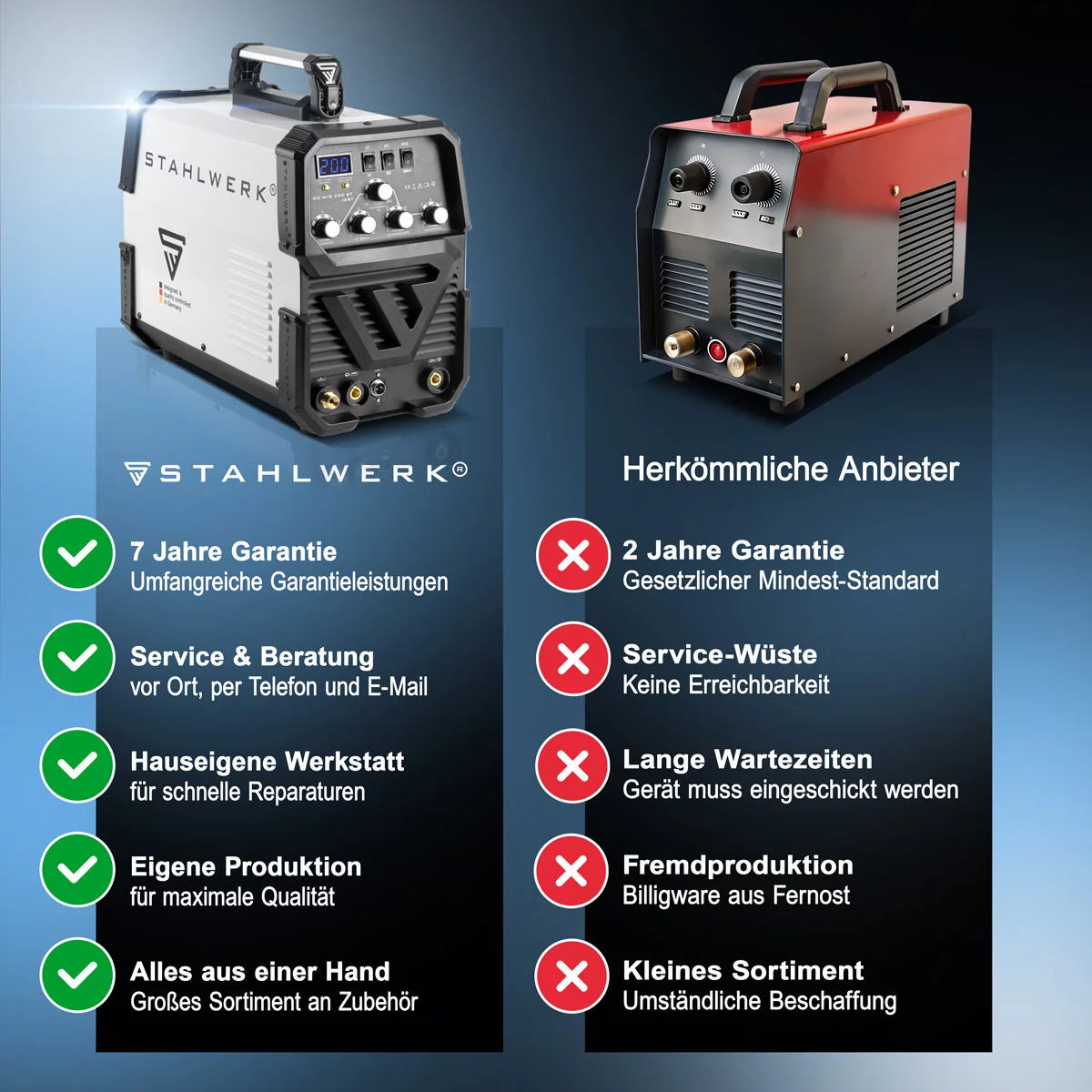 L’entreprise STAHLWERK Schweissgeräte Deutschland GmbH a été fondée en 1998 et propose des équipements de soudage originaux en tant que fabricant. Nous sommes votre fournisseur professionnel et fiable d’équipements de soudage. La sécurité des produits porte la marque déposée STAHLWERK. L’entreprise responsable de la sécurité des produits est STAHLWERK Schweissgeräte GmbH