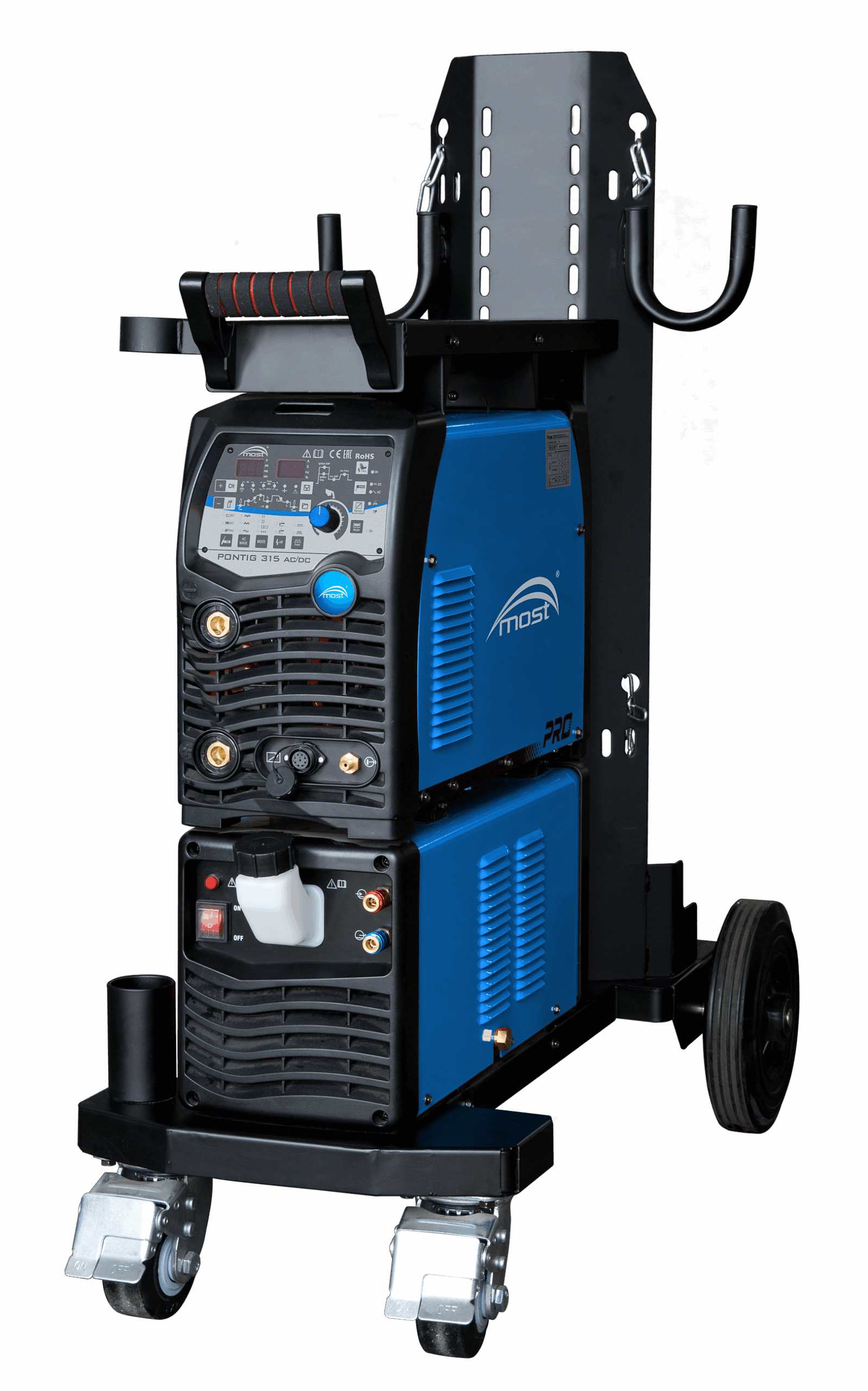 Le PONTIG 315 AC/DC MOST est un redresseur de soudure à onduleur de dernière génération pour le soudage TIG DC de l’acier ou de l’acier inoxydable, le soudage TIG AC de l’aluminium et de ses alliages, ou le soudage MMA avec des électrodes enrobées. Il s’agit d’un appareil industriel puissant alimenté par 3×400 V.